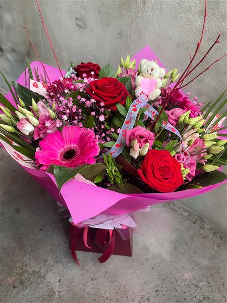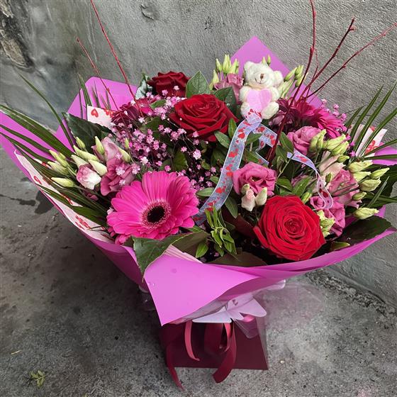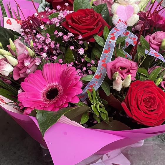 Sweetheart Teddy & Roses Bouquet