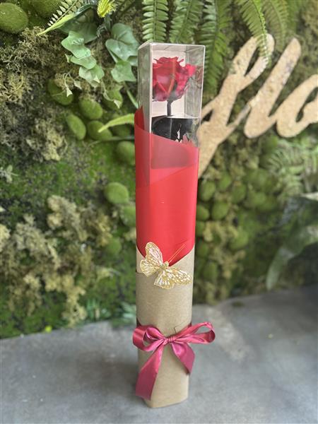 The Ever-Rose is a genuine premium rose preserved in its original state that will last months or even years. Void of the need for maintenance, it offers the sophisticated aesthetic of fresh flora with the permanence of a sculpture. Encased in a box and decorated for your special someone, it is the definitive symbol of enduring quality.